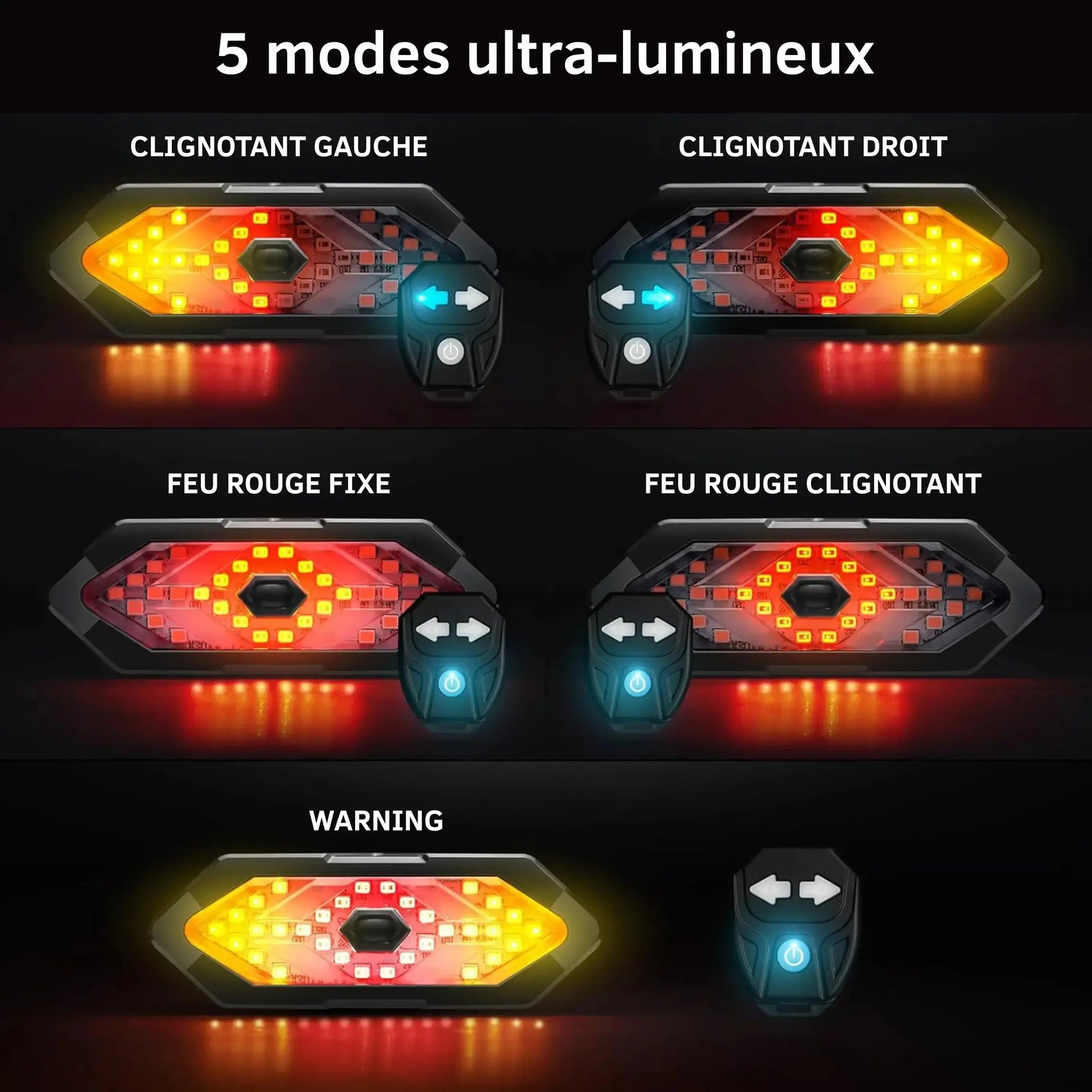 Ces clignotants pour vélo allient simplicité et innovation : télécommande intuitive, recharge facile, mise en place en quelques secondes pour la clignotant/télécommande (...).